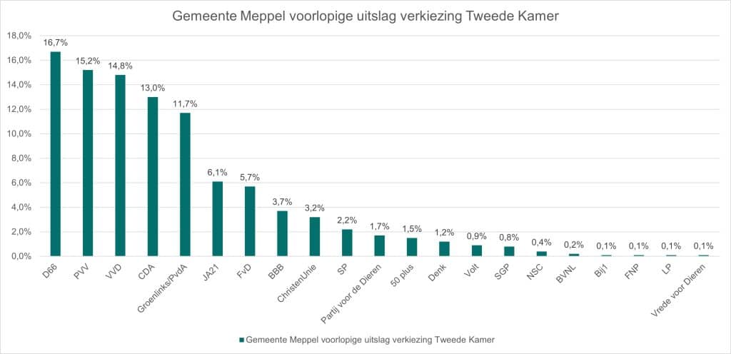 - Eerste opkomstpercentage- 12:00 29 november 2025 - Het opkomstpercentage in de gemeente Meppel is tot nu toe 30%. Dat betekent dat bijna een derde van de stemgerechtigden hun stem al heeft uitgebracht. De stembureaus zijn nog geopend tot 21.00 uur, dus er is nog volop gelegenheid om te stemmen.